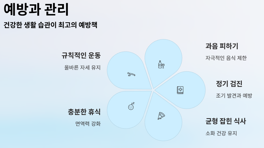 특히 식사 후 통증이 심해지거나 더부룩함이 함께 있다면 소화기 원인을 의심해볼 수 있습니다.