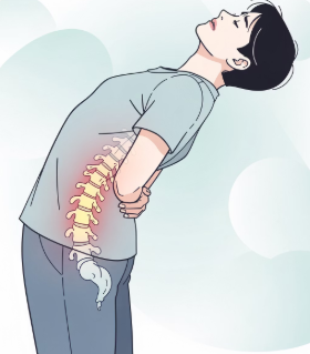 허리를 오래 펴고 있으면 통증이 심해지고, 숙이면 비교적 편해집니다.